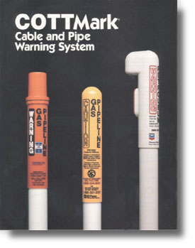 ![]() CottMark® Cable and Pipe Warning SystemThe CottMark® warning sign and utility right of way marker system is a guaranteed, versatile, high strength, lightweight, maintenance free method of identifying and marking buried:
